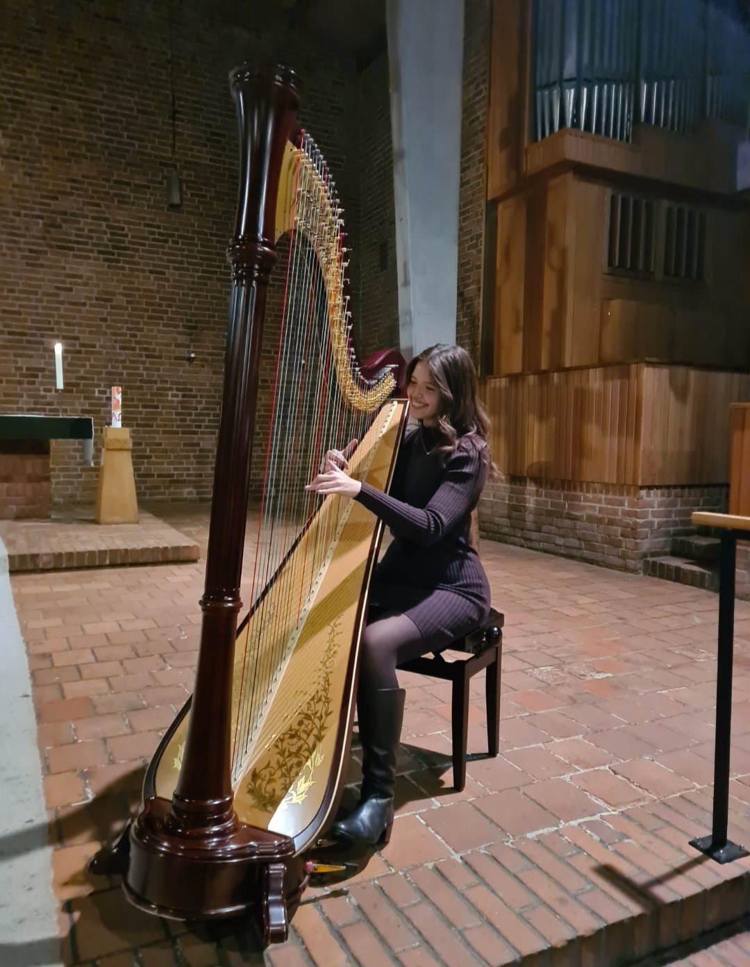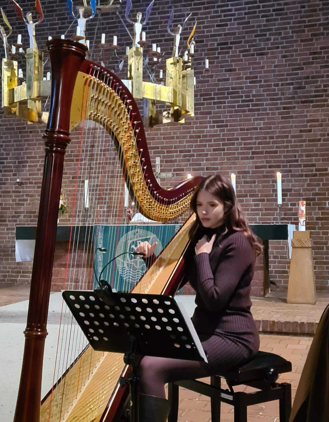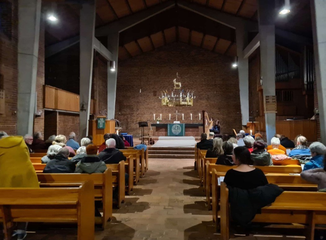 Die Textbeiträge, Geschichten und Lieder wurden von der Harfenistin Laura Krajewski begleitet. So entstand ein stimmungsvoller Moment im Kerzenschein, getragen von tiefgehender Musik. Die Kirche war angenehm warm, und zum Abschluss sprach Pastorin Sabine Behrens einen gemeinsamen Segen.