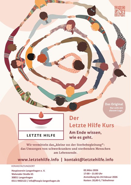 Der letzte Hilfe Kurs Anfang März 2026 startet wieder ein Letzte Hilfe Kurs in der Geschäftsstelle des Hospizverein Langenhagen e. V. - Walsroder Straße 65, 30851 Langenhagen.