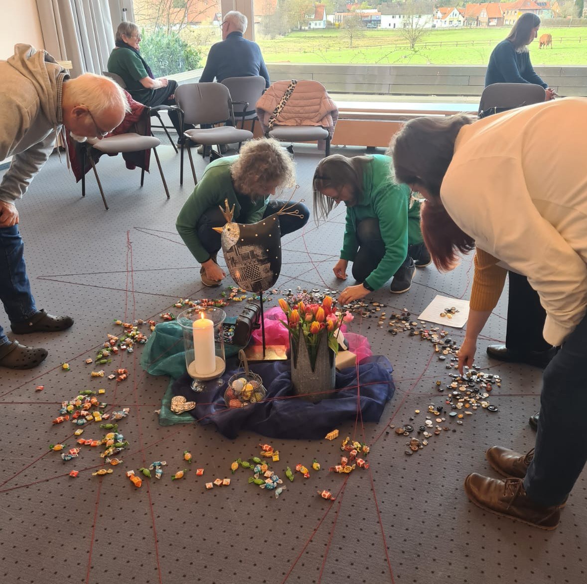 Die Referentin Renate Lohmann führte mit feinfühligen und kreativen Methoden durch die Tage – unter anderem mit der Übung, das eigene Netzwerk sichtbar zu machen. Dabei entstanden wertvolle Erkenntnisse sowie viele schöne und intensive Gespräche.
